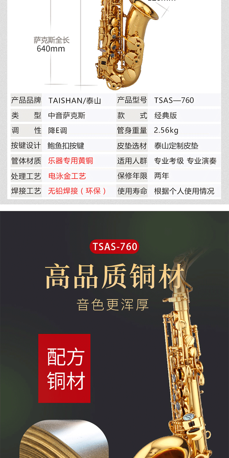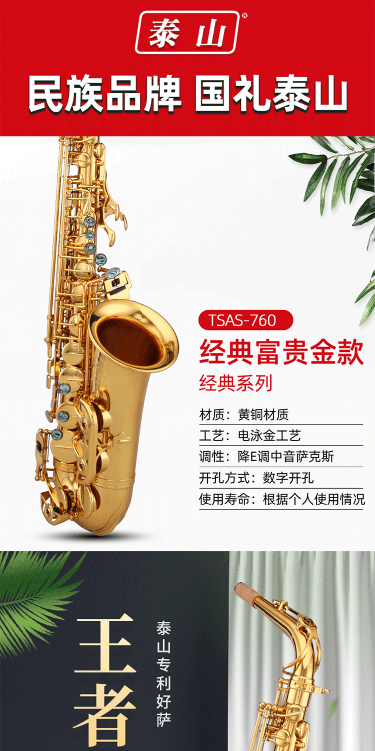 泰山中音降e调专业级萨克斯龙雀