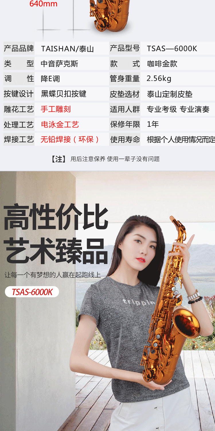 中音萨克斯咖啡金款 TSAS-6000K哑光