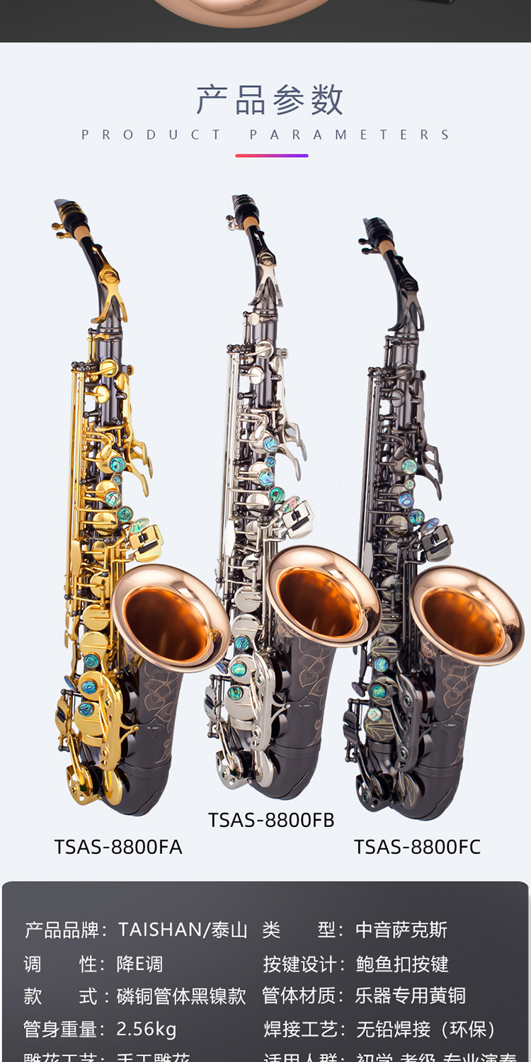 中音萨克斯黑镍磷铜款 TSAS-8800
